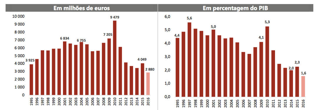 Ora, e com a excepção do ano de 2015 (e do défice de 4.4%), o investimento público tem descido de forma consistente desde 2010, ano da entrada da Troika. Daqui vêm as mesmas perguntas: há bom investimento público? Quando é que a redução do investimento público é positiva ou negativa?