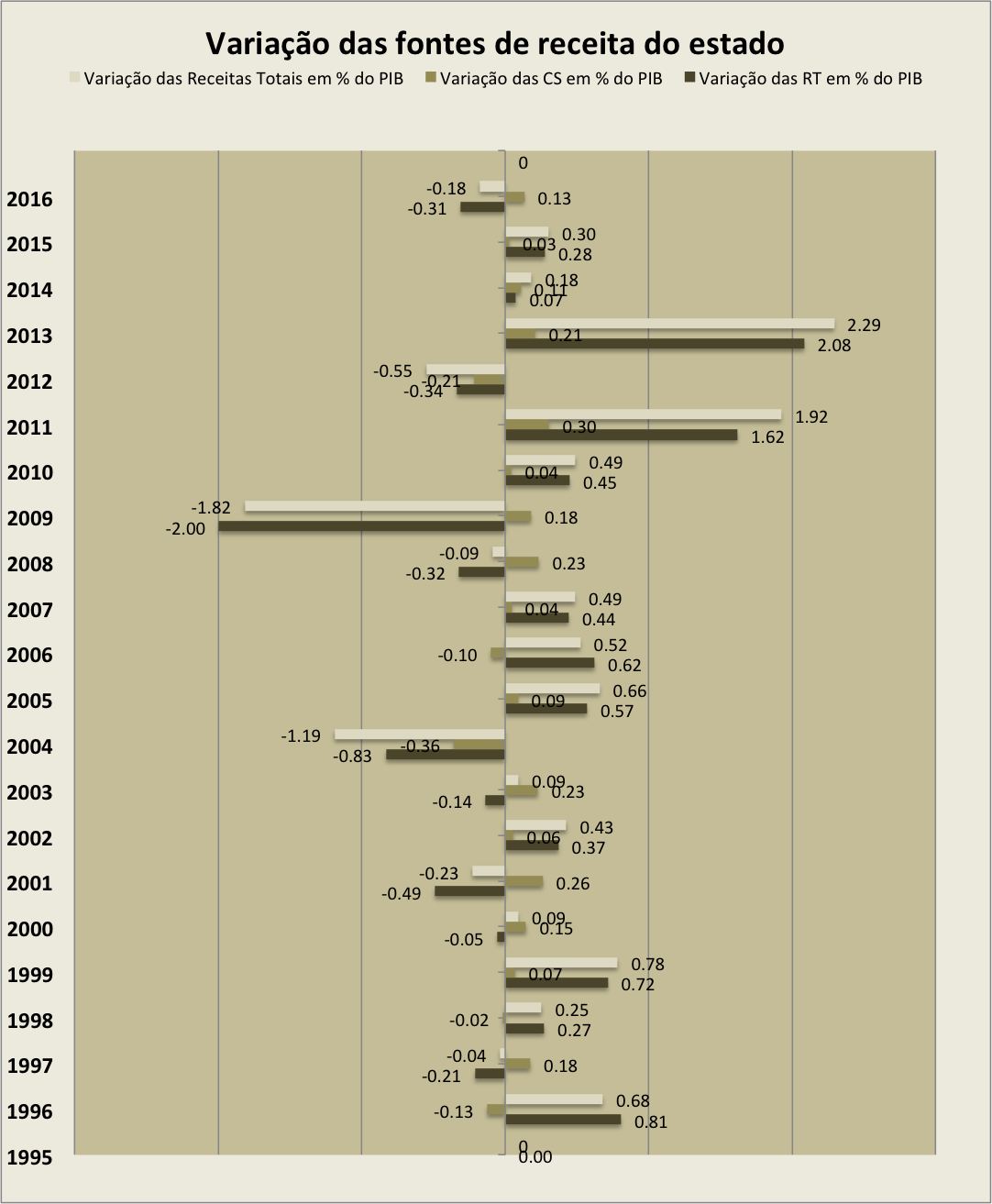 Variação das fontes de receita do estado
