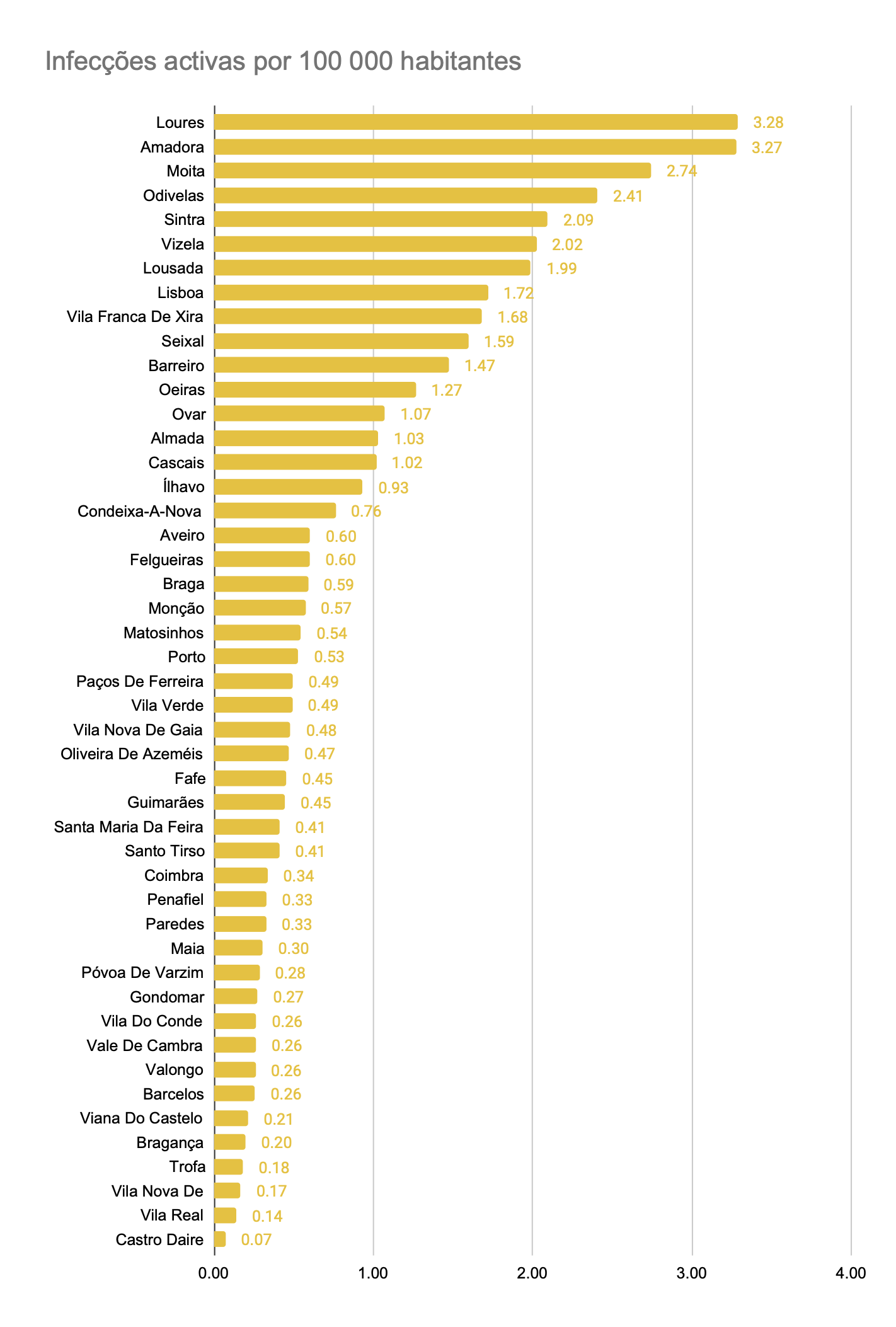 Infecções activas por 100 000 habitantes